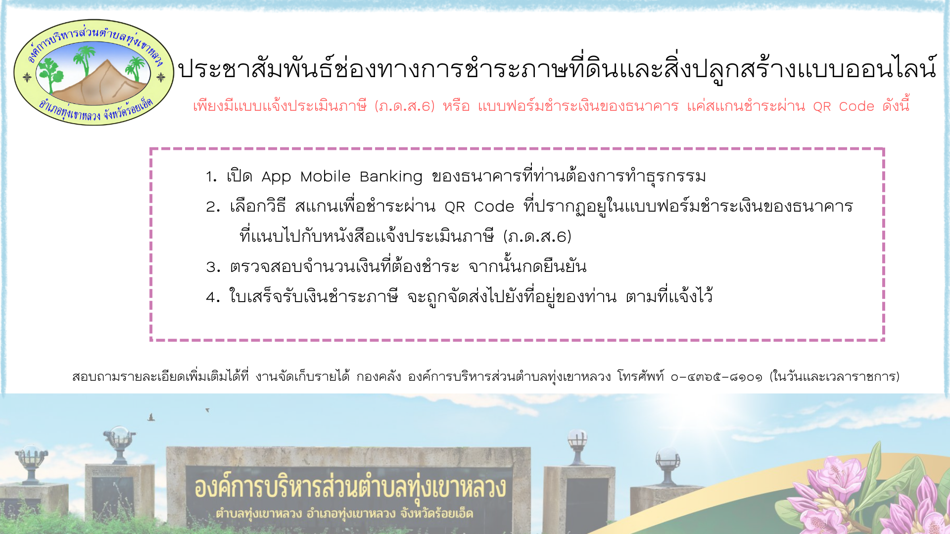 ประชาสัมพันธ์ช่องทางการชำระภาษีที่ดินและสิ่งปลูกสร้างแบบออนไลน์