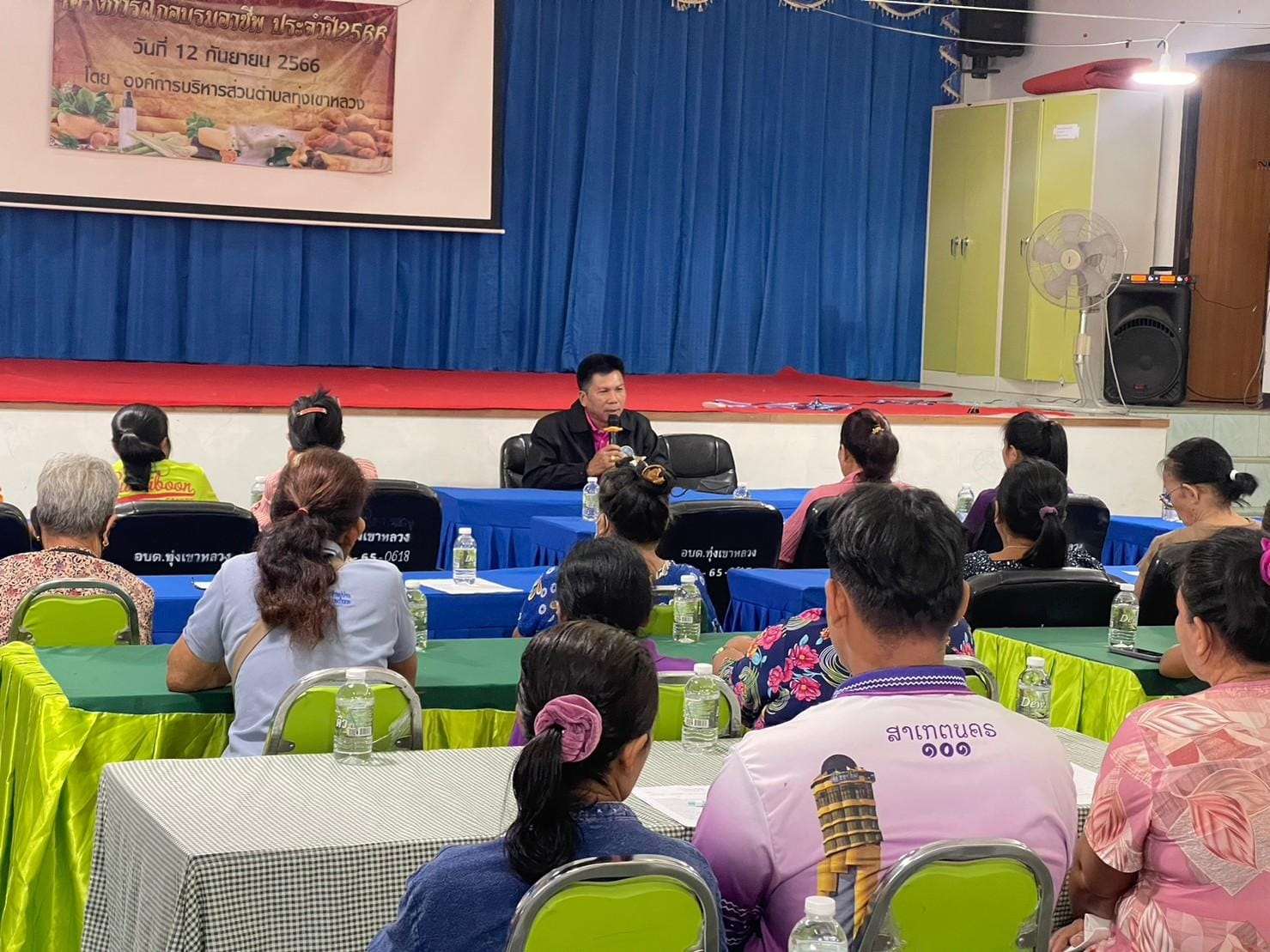 นายกอบต. คณะผู้บริหาร จัดอบรมโครงการ ลด ละ เลิก ใช้ภาชนะโฟม ถุงหิ้ว บรรจุอาหาร เพื่อสุขภาพที่ดี