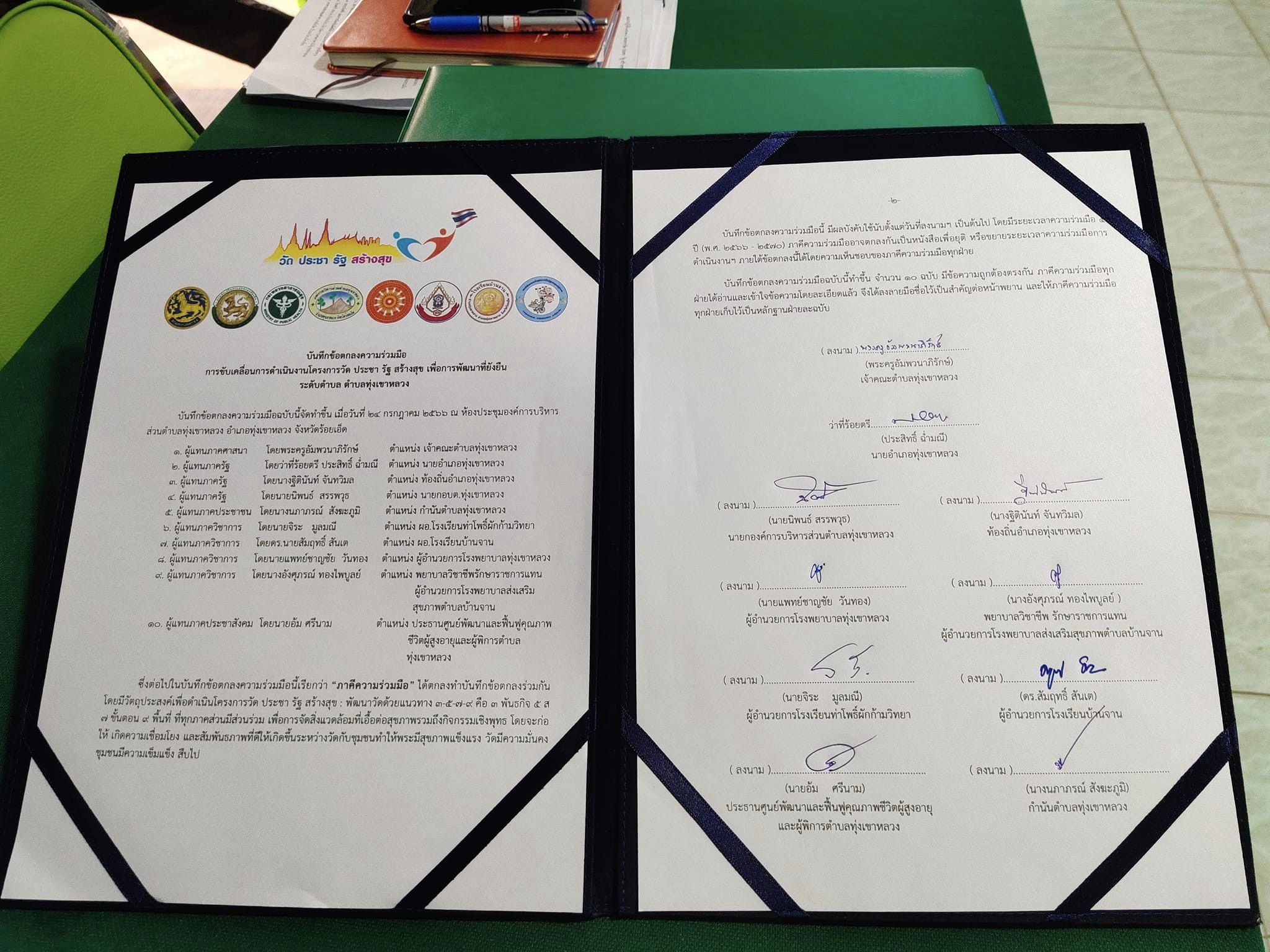 โครงการวัด ประชา รัฐ สร้างสุข ระดับตำบลทุ่งเขาหลวง และคณะกรรมการดำเนินการบันทึกข้อตกลงความร่วมมือ (MOU) โครงการวัด ประชา รัฐ สร้างสุข เพื่อการพัฒนาที่ยั่งยืน ตำบลทุ่งเขาหลวง