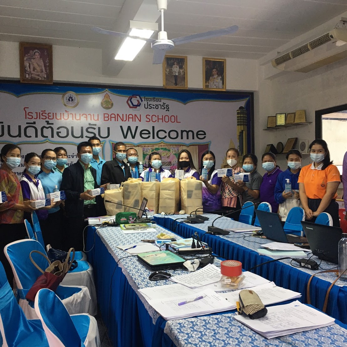 วันที่ 9 มิถุนายน 2564 อบต.ทุ่งเขาหลวง มอบเจลแอลกอฮอล์และหน้ากากอนามัยให้โรงเรียนบ้านจาน