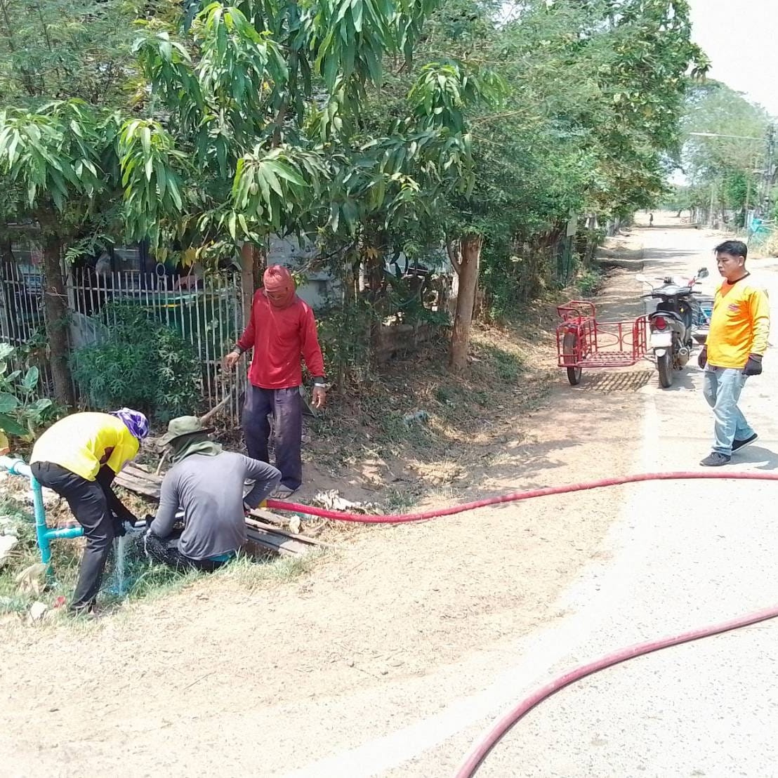 เจ้าหน้าที่องค์การบริหารส่วนตำบลทุ่งเขาหลวง ได้ล้างทำความสะอาดท่อประปารอบๆหมู่ที่ 5 บ้านจาน