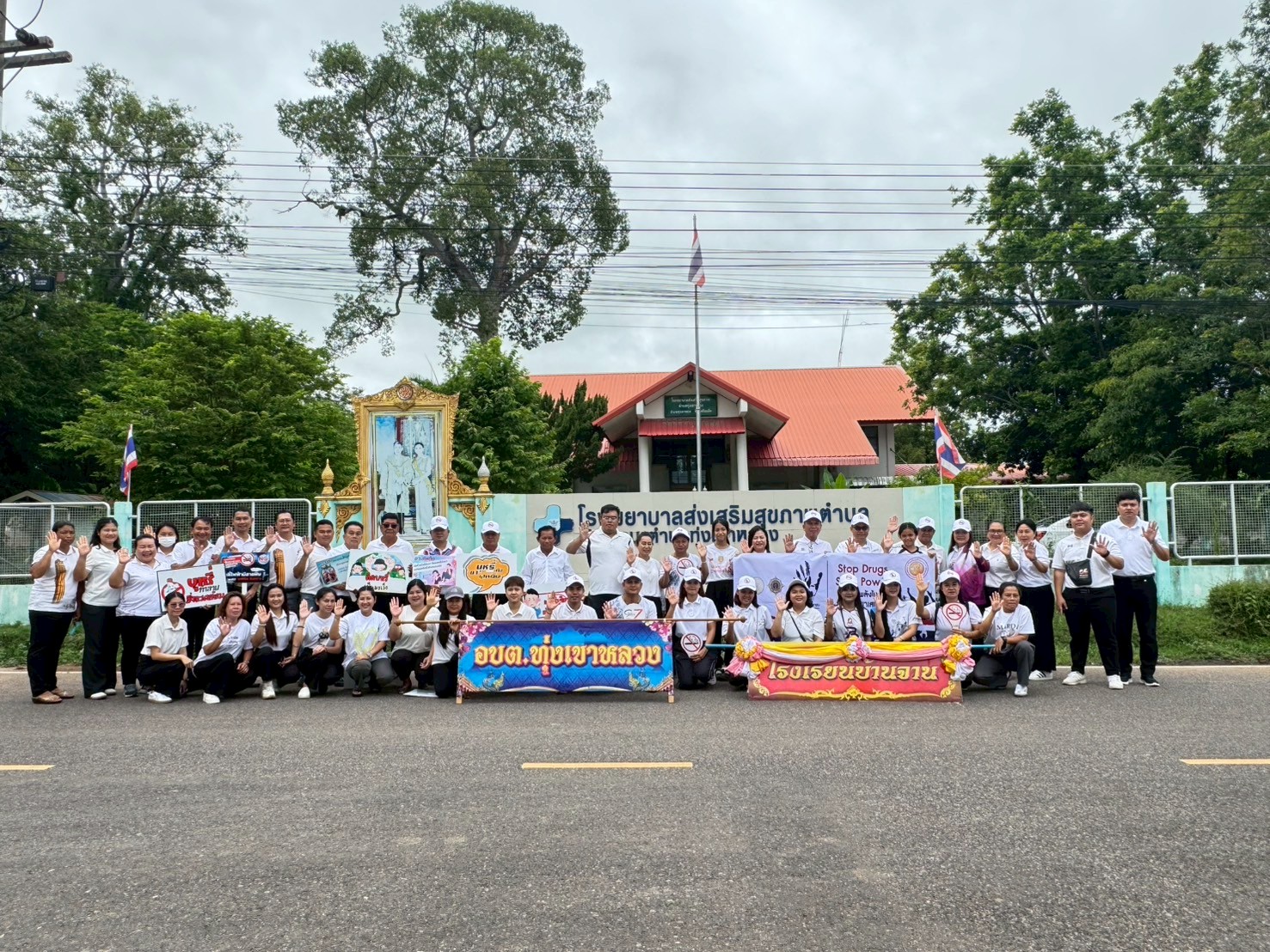 27 มิถุนายน 2568 15:21 น.วันที่ 27 มิถุนายน 2568 องค์การบริหารส่วนตำบลทุ่งเขาหลวง ร่วมกับ โรงเรียนบ้านจาน จัดกิจกรรมเดินรณรงค์ประชาสัมพันธ์ เนื่องในวันต่อต้านยาเสพติดสากล ( 26 มิถุนายน )