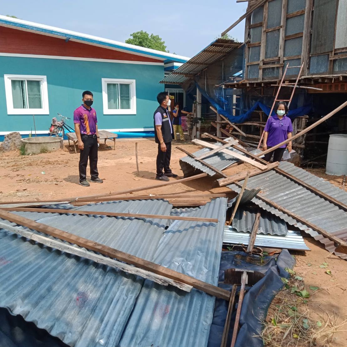 นายนิพนธ์ สรรพวุธ นายก อบต.ทุ่งเขาหลวง และเจ้าหน้าที่ อบต.ทุ่งเขาหลวง ตรวจสอบความเสียหายบ้านเรือนของประชาชนในพื้นที่ตำบลทุ่งเขาหลวง จากเหตุวาตภัย