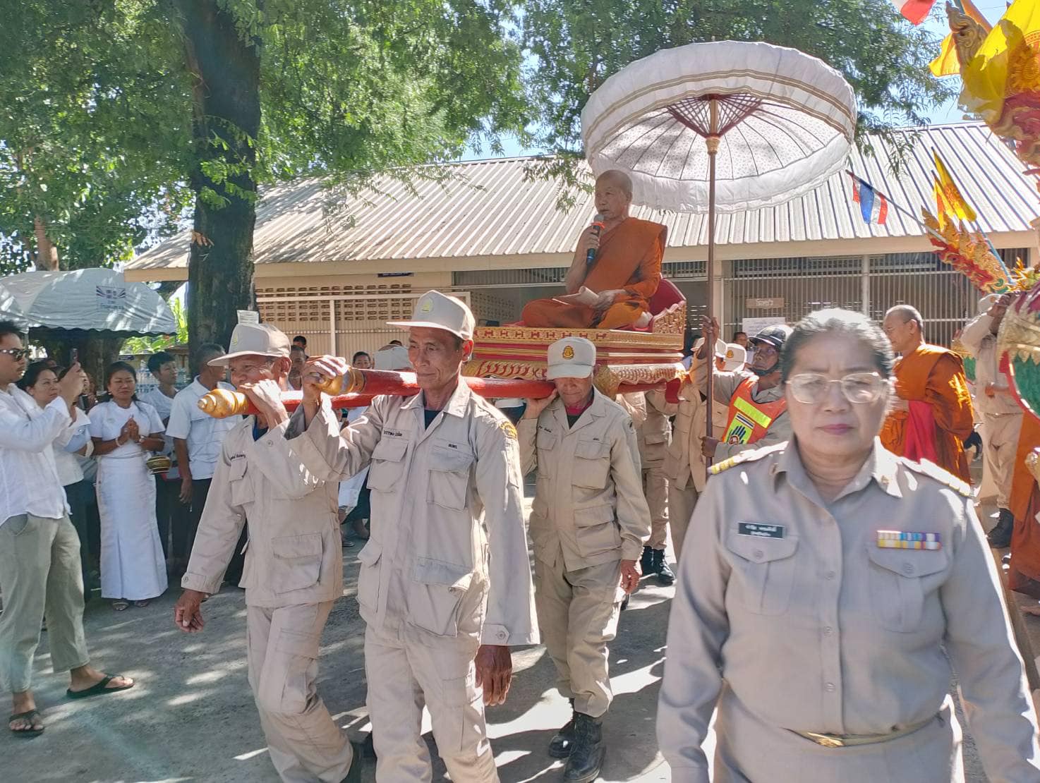 เข้าร่วมพิธีเคลื่อนศพพระครูบูรพาธรรมวรคุณ (ประจักษ์ เตชวโร) อดีตเจ้าอาวาสวัดบูรพาจานใต้ขึ้นบนเมรุชั่วคราว โดยมีหลวงพ่อพระครูสิริธรรมโกวิท เจ้าคณะอำเภอทุ่งเขาหลวง สวดยอดมุกและนายนิพนธ์ สรรพวุธ นายก อบต.ทุ่งเขาหลวง ประธานฝ่ายฆราวาส นำขบวนเคลื่อนศพ