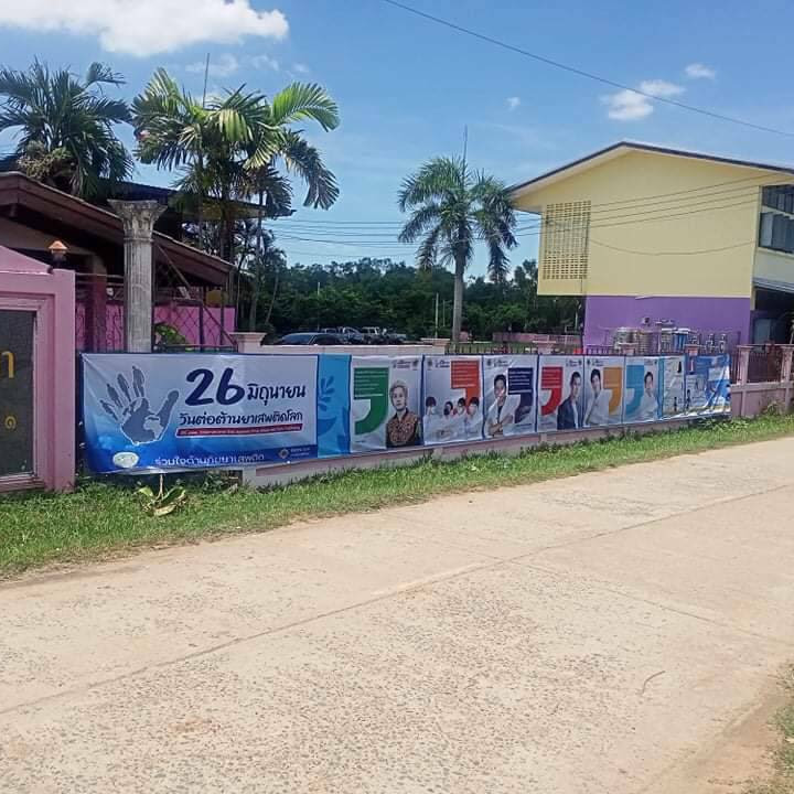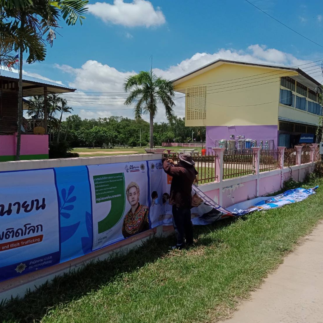 1. ติดป้ายรณรงค์เพื่อต่อต้านและป้องกันยาเสพติดหน้าสถานที่ราชการ